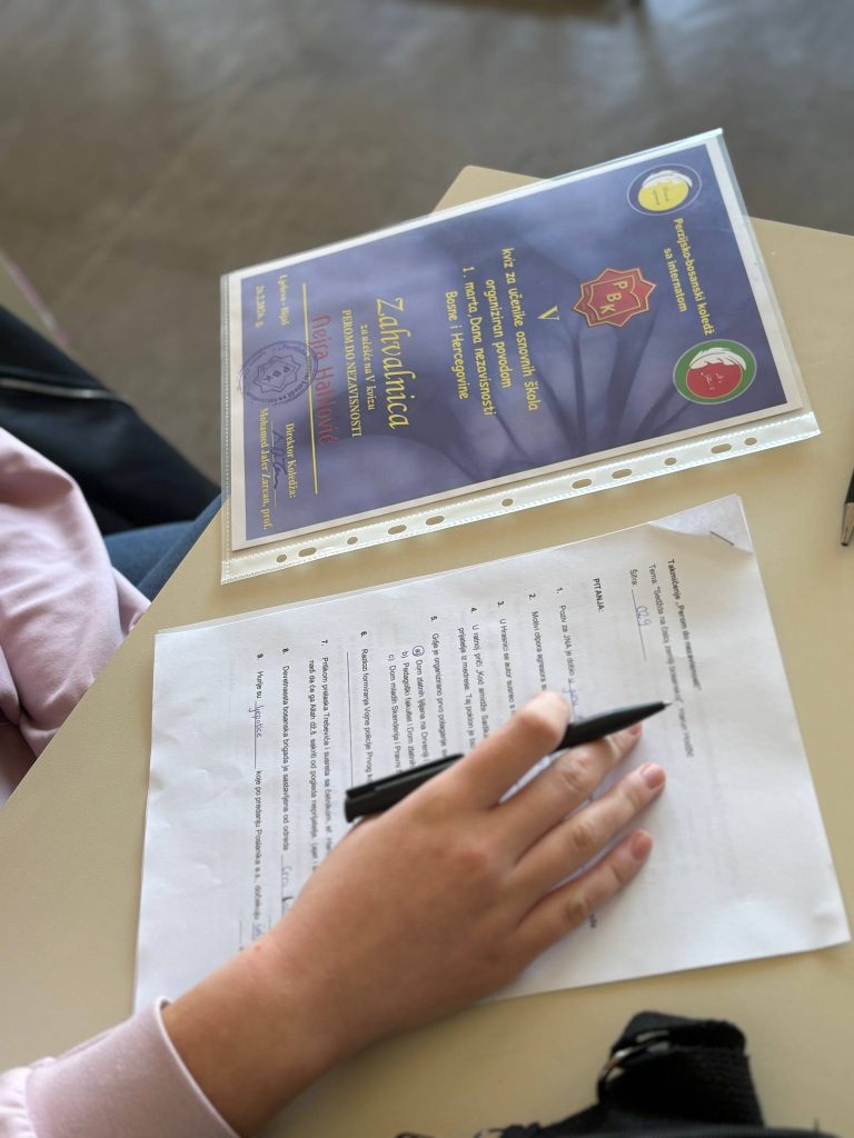 Dana, 26. 2. 2026. godine, u Perzijsko – bosanskom koledžu održano je peto po redu takmičenje “Perom do nezavisnosti”, “Sedžda na čistoj zemlji bosanskoj” autora Haruna Hodžića bila je izvor pitanja na takmičenju i uzrok detaljno pročitane knjige.